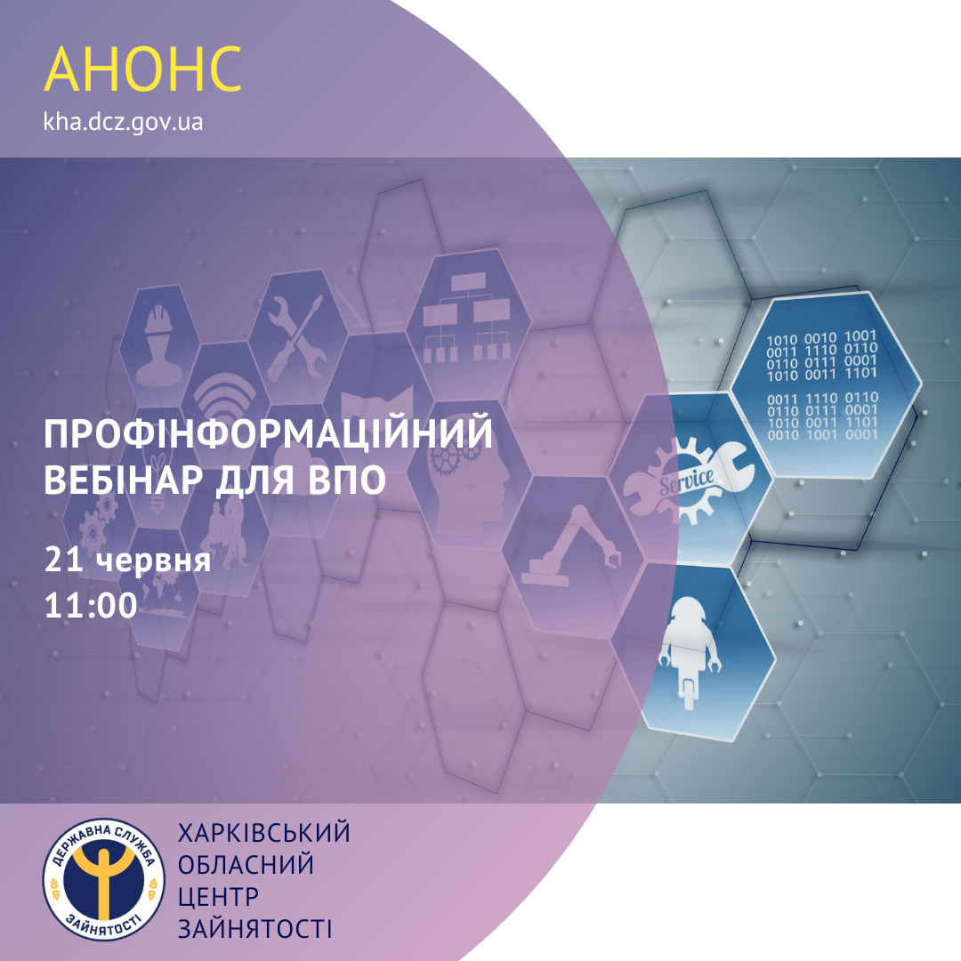 21 червня об 11:00 фахівці Дергачівської районної філії ХОЦЗ проведуть профінформаційний вебінар для вимушено переміщених осіб, які перебувають на обліку в службі зайнятості як безробітні.