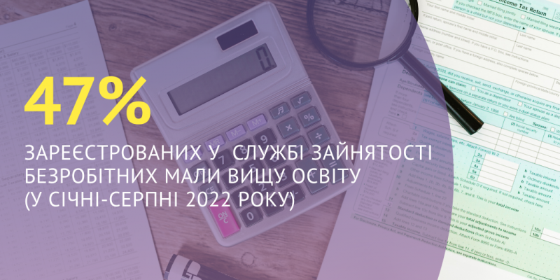 47% зареєстрованих у Харківській обласній службі зайнятості безробітних мали вищу освіту (у січні-серпні 2022 року)