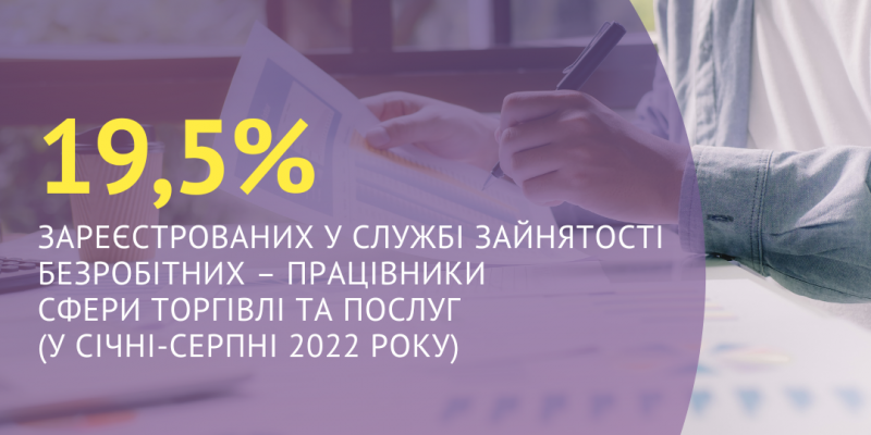 19,5% зареєстрованих у Харківській обласній службі зайнятості безробітних – працівники сфери торгівлі та послуг (у січні-серпні 2022 року)