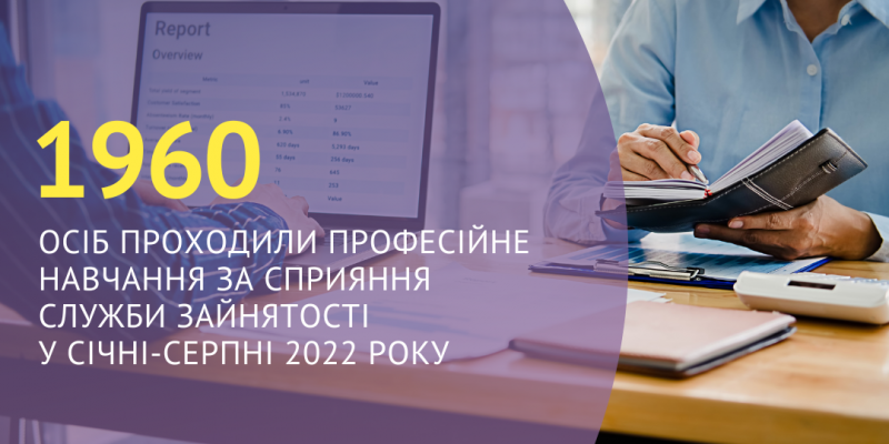 1960 осіб проходили професійне навчання за сприяння Харківської обласної служби зайнятості протягом січня-серпня 2022 року