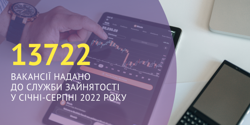 13722 вакансії надано роботодавцями до Харківської обласної служби зайнятості протягом січня-серпня 2022 року