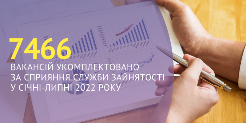 7466 вакансій укомплектовано за сприяння Харківської обласної служби зайнятості протягом січня-липня 2022 року