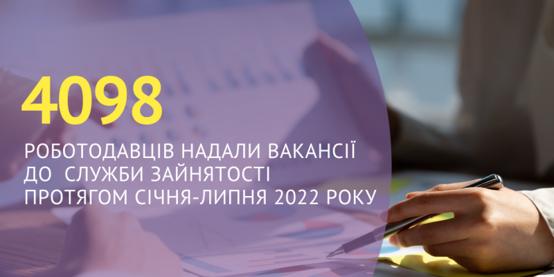 4098 роботодавців надали вакансії до Харківської обласної служби зайнятості протягом січня-липня 2022 року.