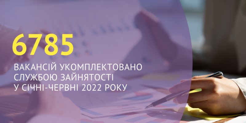 6785 вакансій укомплектовано Харківською обласною службою зайнятості протягом січня-червня 2022 року.