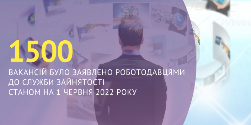 1500 вакансій було заявлено роботодавцями до Харківської обласної служби зайнятості станом на 1 червня 2022 року.