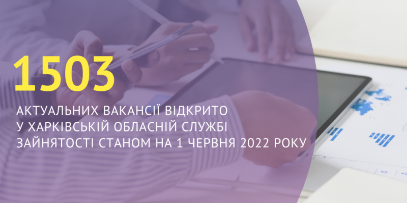 1503 актуальних вакансії відкрито у Харківській обласній службі зайнятості станом на 1 червня 2022 року.