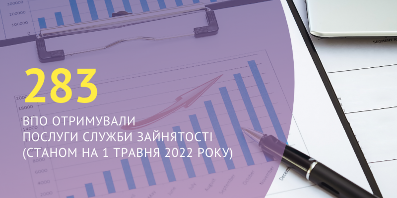 283 внутрішньо переміщені особи отримували послуги Харківської обласної служби зайнятості (станом на 1 травня 2022 року).