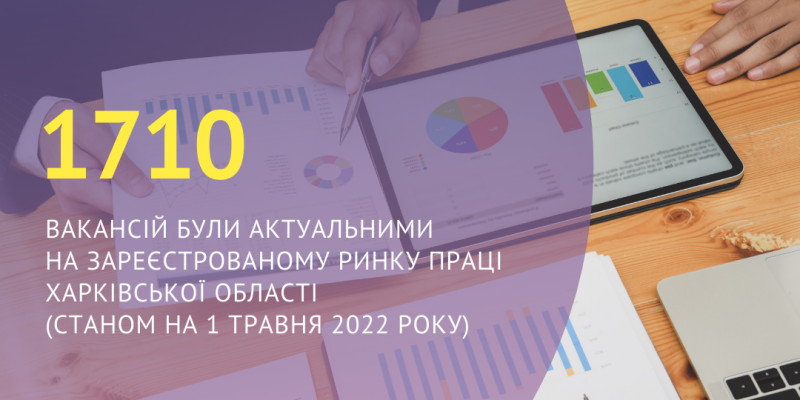 Станом на 1 травня 2022 року на зареєстрованому ринку праці Харківської області актуальними були 1710 вакансій