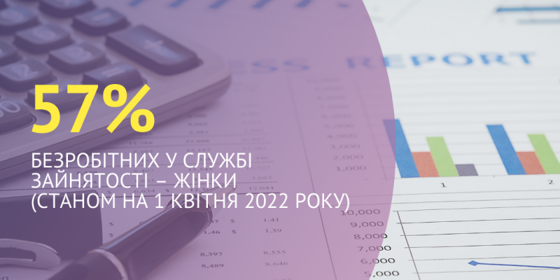 57% безробітних у службі зайнятості – жінки (станом на 1 квітня 2022 року).