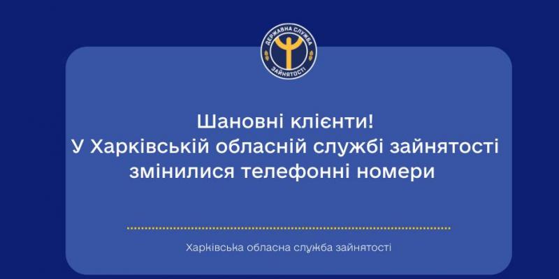 З 1 вересня у Харківській обласній службі зайнятості змінилися телефонні номери.