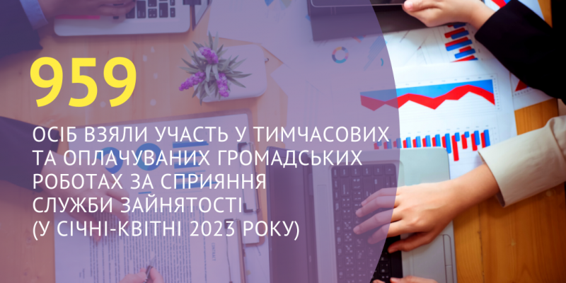 959 осіб взяли участь у тимчасових та оплачуваних громадських роботах за сприяння Харківської обласної служби зайнятості (у січні-квітні 2023 року)