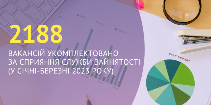 2188 вакансій укомплектовано за сприяння Харківської обласної служби зайнятості (у січні-березні 2023 року)