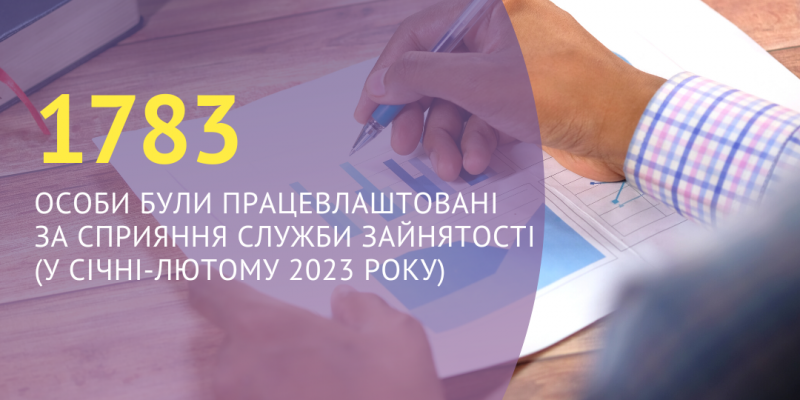 1783 особи були працевлаштовані за сприяння Харківської обласної служби зайнятості (у січні-лютому 2023 року)