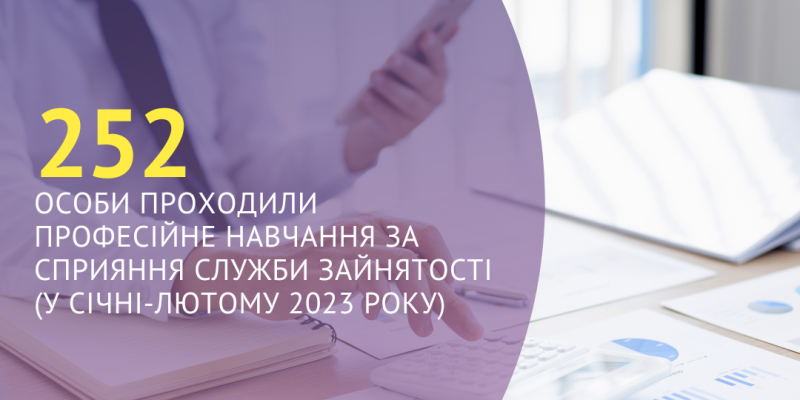 252 особи проходили професійне навчання за сприяння Харківської обласної служби зайнятості (у січні-лютому 2023 року).