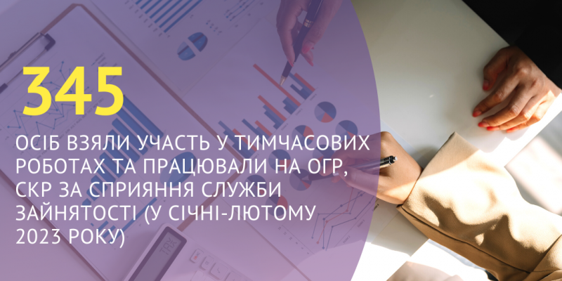 345 осіб взяли участь у тимчасових, оплачуваних громадських та суспільно корисних роботах за сприяння Харківської обласної служби зайнятості (у січні-лютому 2023 року)