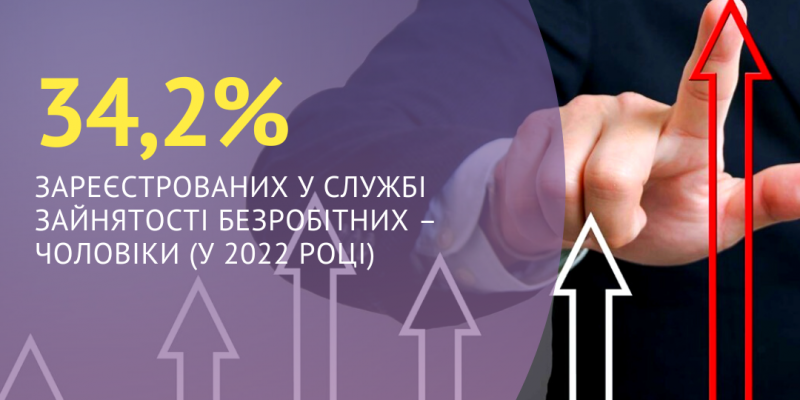 34,2% зареєстрованих у Харківській обласній службі зайнятості безробітних – чоловіки (у 2022 році)