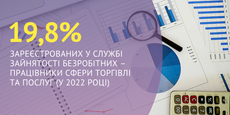 19,8% зареєстрованих у Харківській обласній службі зайнятості безробітних – працівники сфери торгівлі та послуг (у 2022 році)