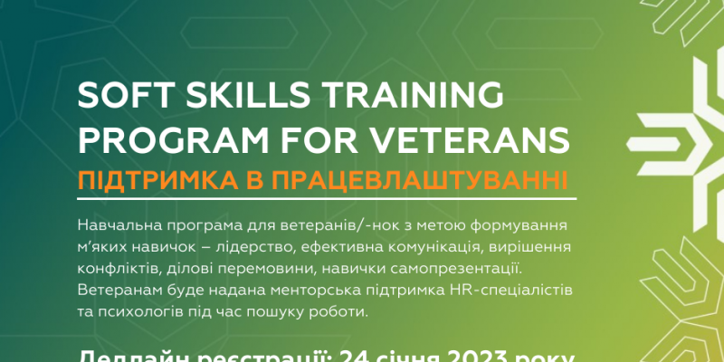 Стартує навчально-підтримуюча Програма здобуття «м’яких навичок» (soft skills) для ветеранів/-нок