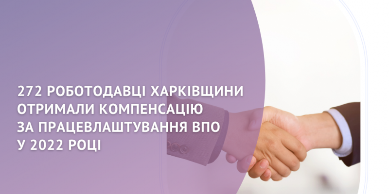 У 2022 році запровадженою Урядом в умовах воєнного часу програмою з надання компенсації роботодавцям за працевлаштування внутрішньо переміщених осіб по Харківській області скористались 272 працедавців за 621 працевлаштовану особу