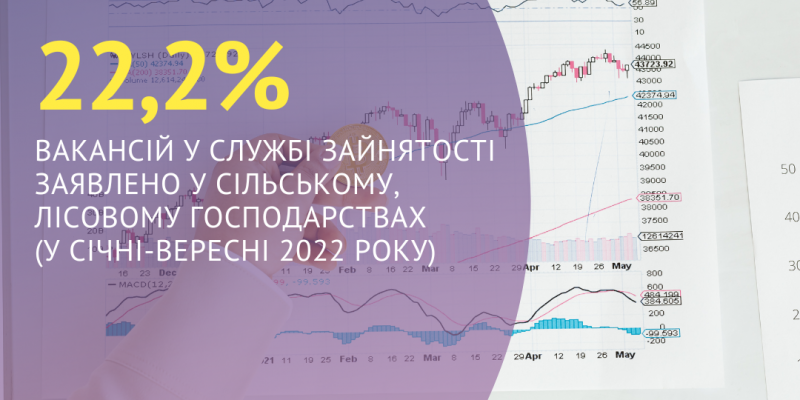 22,2% вакансій у Харківській обласній службі зайнятості заявлено у сільському, лісовому господарствах (у січні-вересні 2022 року)