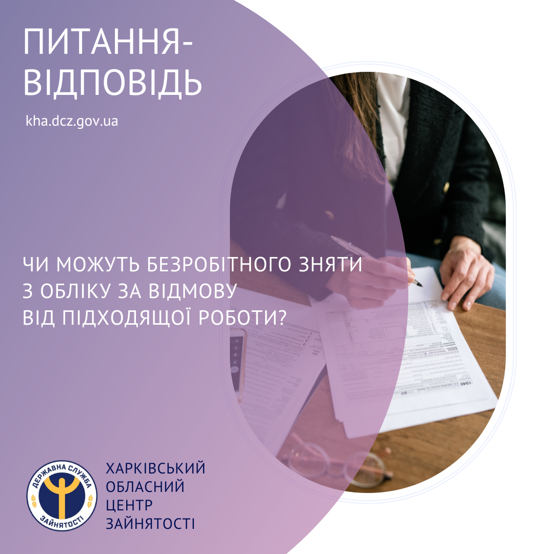 Тому згідно з п.4 ст.45 Закону України «Про зайнятість населення» (https://cutt.ly/xZr6EPZ) реєстрація безробітного в територіальному органі центрального органу виконавчої влади, що реалізує державну політику у сфері зайнятості населення та трудової міграції, припиняється у разі дворазової відмови від пропонування підходящої роботи, а для безробітного, який вперше шукає роботу та не має професії (спеціальності), – дворазової відмови від пропонування проходження професійного навчання.