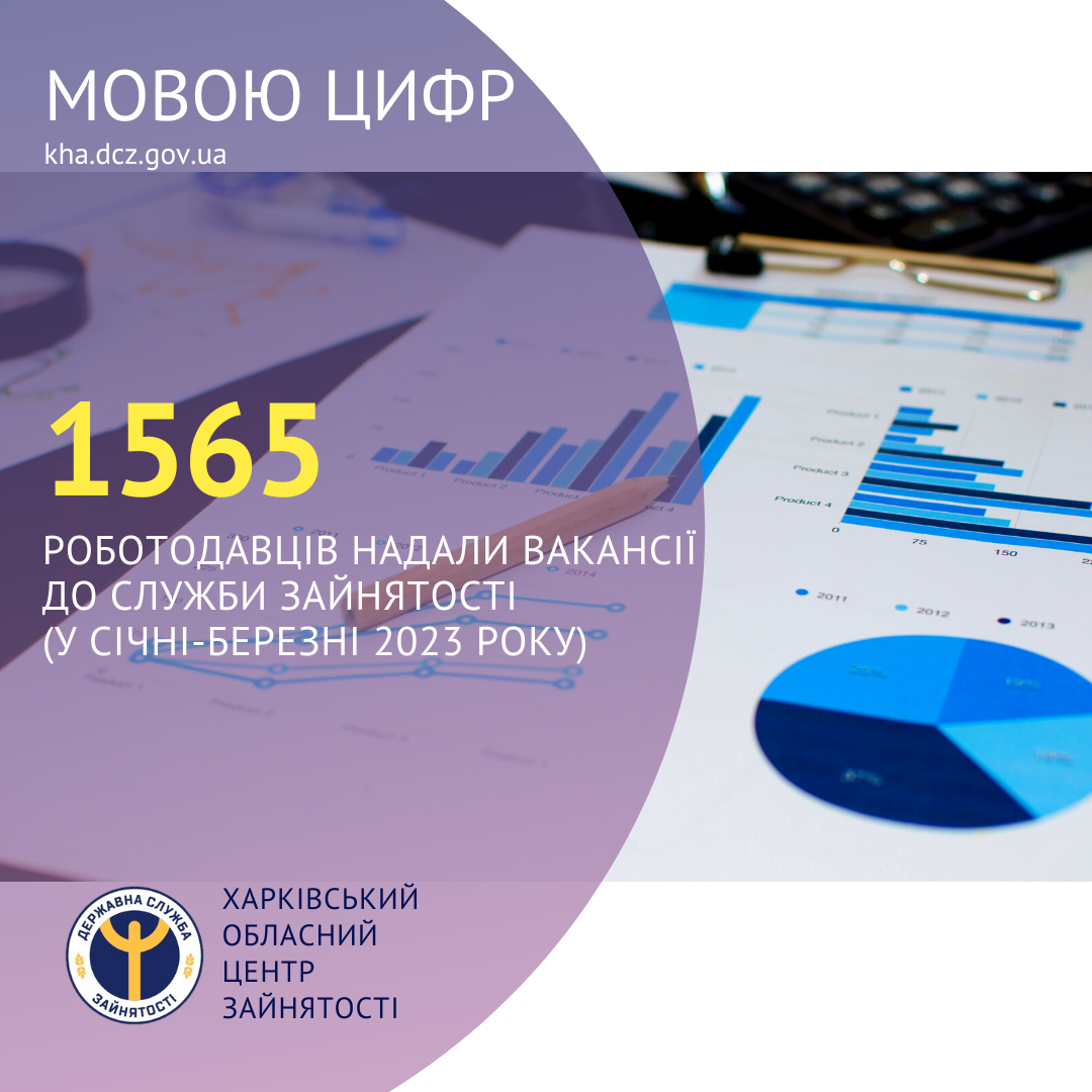 1565 роботодавців надали вакансії до Харківської обласної служби зайнятості (у січні-березні 2023 року).