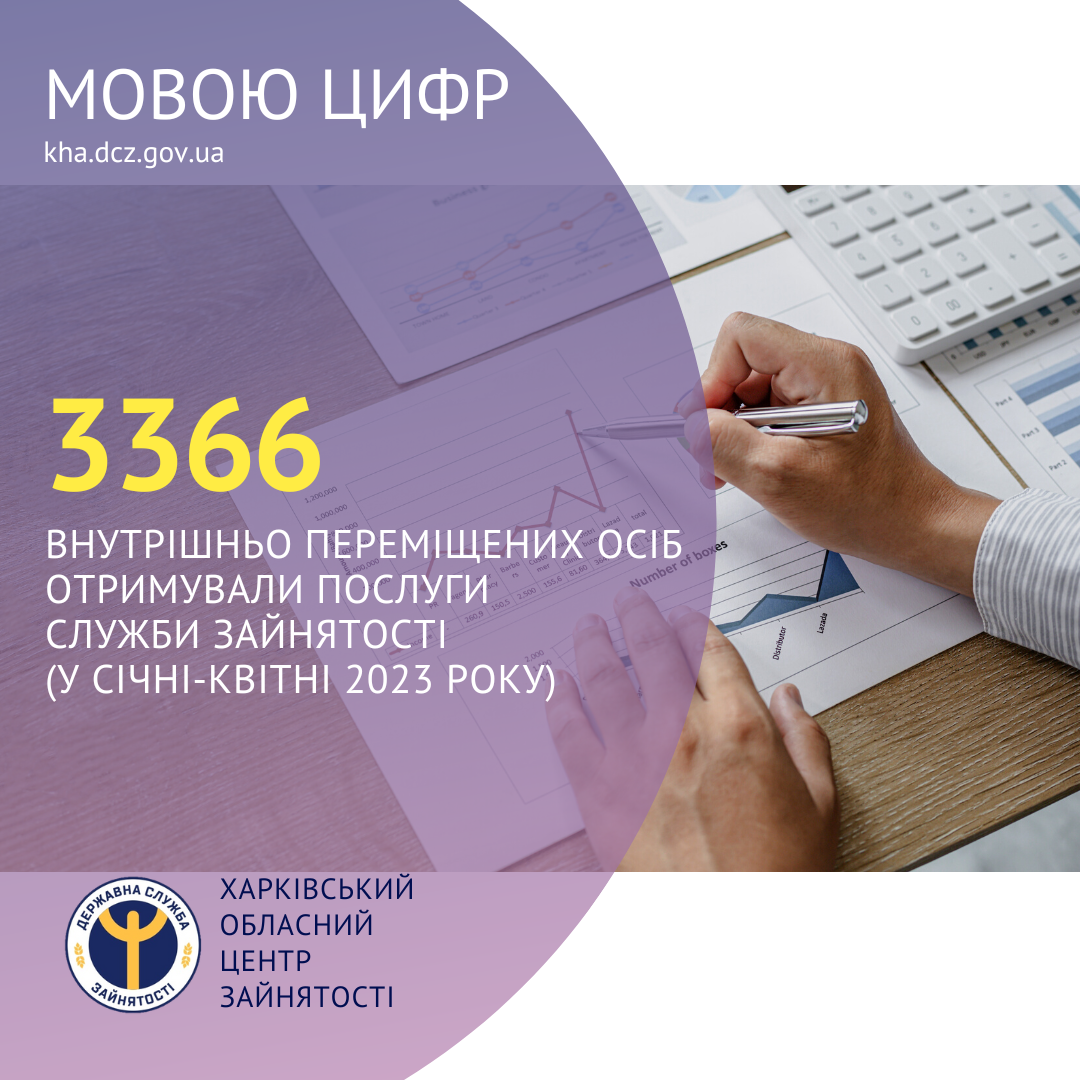 3366 внутрішньо переміщених осіб отримували послуги Харківської обласної служби зайнятості (у січні-квітні 2023 року).
