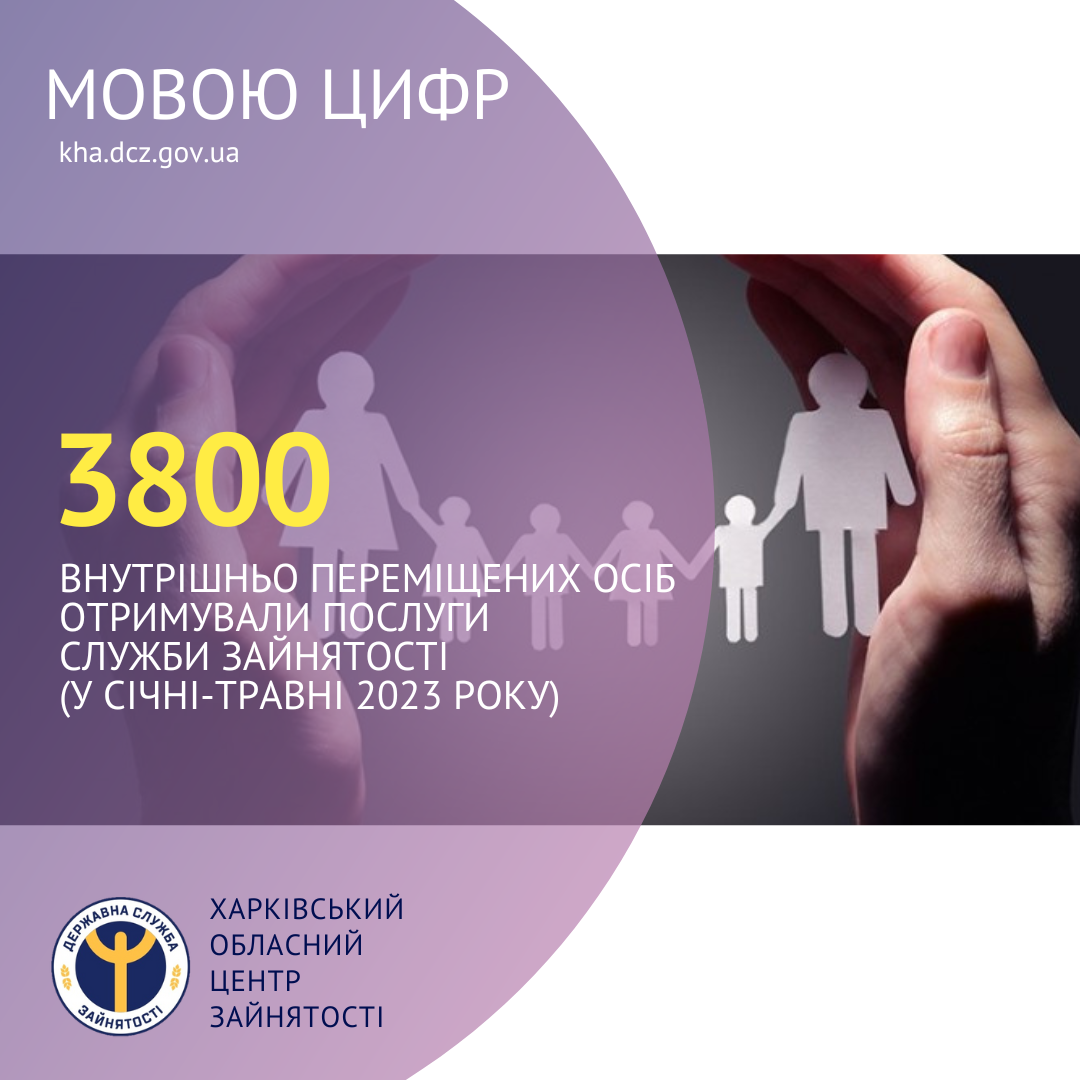 3800 внутрішньо переміщених осіб отримували послуги Харківської обласної служби зайнятості (у січні-травні 2023 року).