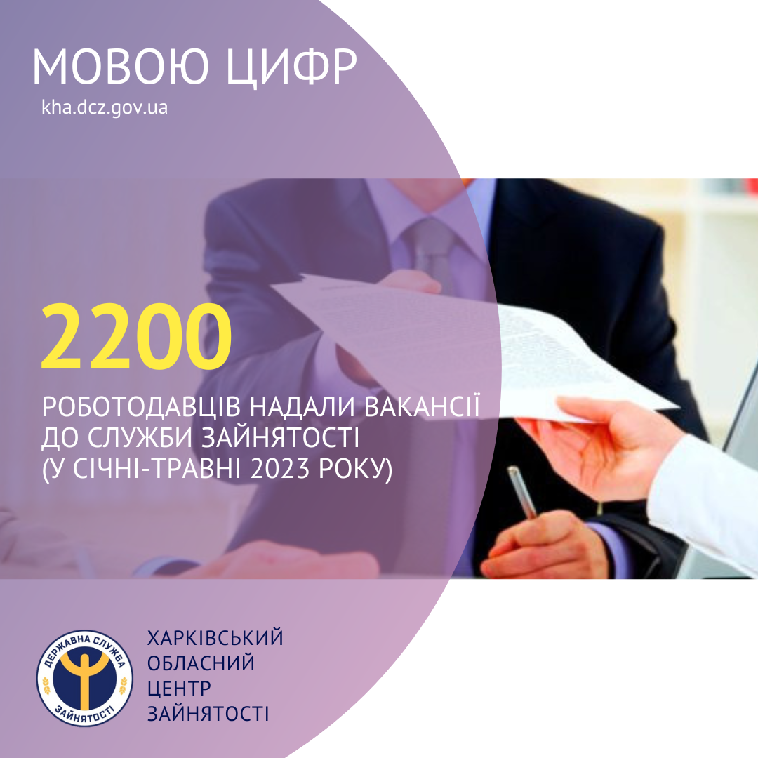2200 роботодавців надали вакансії до Харківської обласної служби зайнятості (у січні-травні 2023 року).