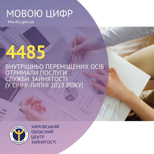 4485 внутрішньо переміщених осіб отримували послуги Харківської обласної служби зайнятості (у січні-липні 2023 року).