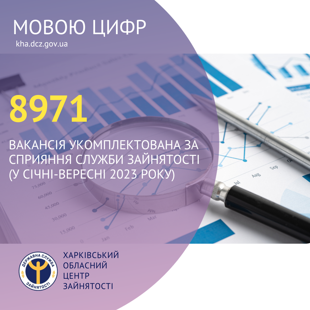 8971 вакансія укомплектована за сприяння Харківської обласної служби зайнятості (у січні-вересні 2023 року).