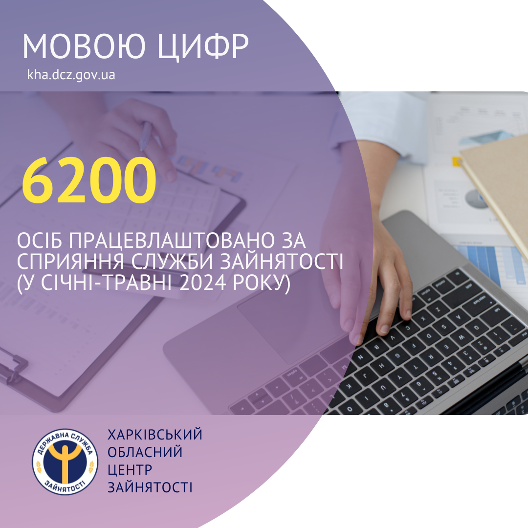 6198 осіб працевлаштовано за сприяння Харківської обласної служби зайнятості (у січні-травні 2024 року).