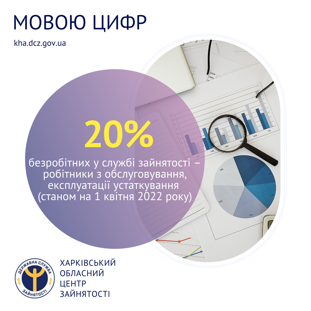 06.04.2022 | 10:04 Facebook Twitter Google+ 20% безробітних у службі зайнятості – робітники з обслуговування, експлуатації устаткування (станом на 1 квітня 2022 року).