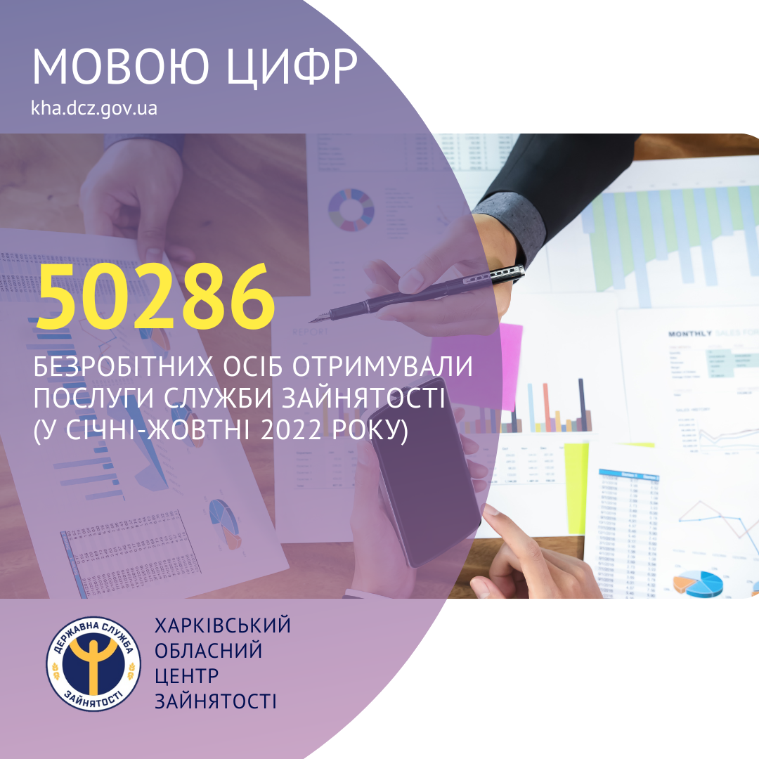 50286 безробітних осіб отримували послуги Харківської обласної служби зайнятості (протягом січня-жовтня 2022 року).