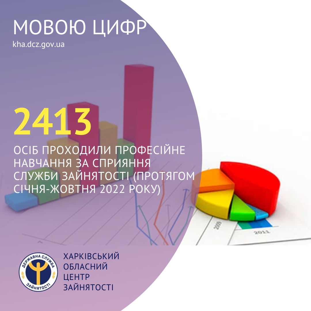 2413 осіб проходили професійне навчання за сприяння Харківської обласної служби зайнятості (протягом січня-жовтня 2022 року).