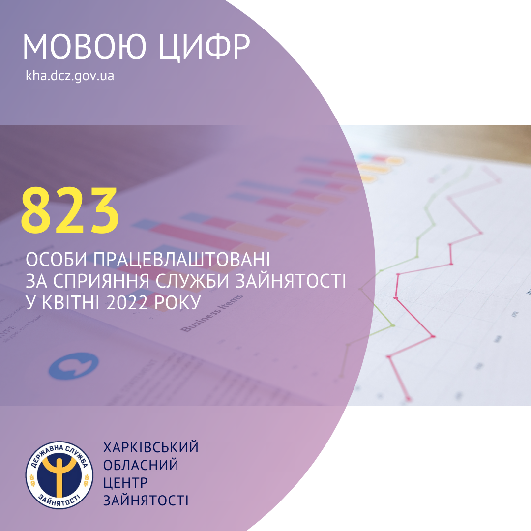 823 особи працевлаштовані за сприяння служби зайнятості у квітні 2022 року.