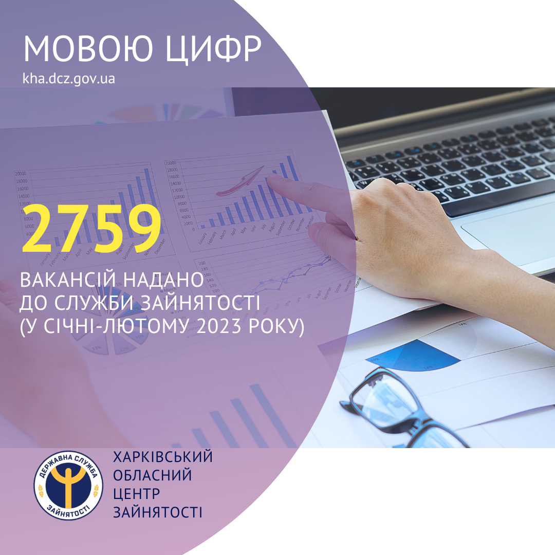 2759 вакансій надано до Харківської обласної служби зайнятості (у січні-лютому 2023 року).
