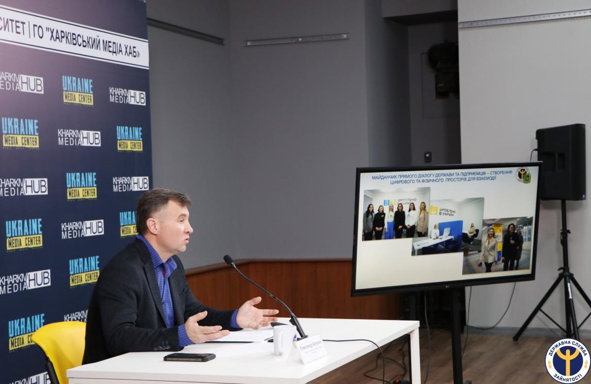 Всеукраїнська економічна платформа «Зроблено в Україні» має стати майданчиком прямого діалогу держави та підприємців. На Харківщині такі простори будуть відкриті на базі філій Харківського обласного центру зайнятості. Перший відкриється у Харкові вже найближчим часом, він діятиме на базі Харківської міської філії. Про це під час брифінгу повідомив директор Харківського обласного центру зайнятості Олександр Котуков. Цей простір націлений на мікро- та малий бізнес. У ньому підприємці зможуть отримати консультації щодо програм підтримки від Уряду, місцевих і міжнародних проєктів. Також відвідувачі матимуть змогу ознайомитись із грантовими програмами, що супроводжує служба зайнятості.