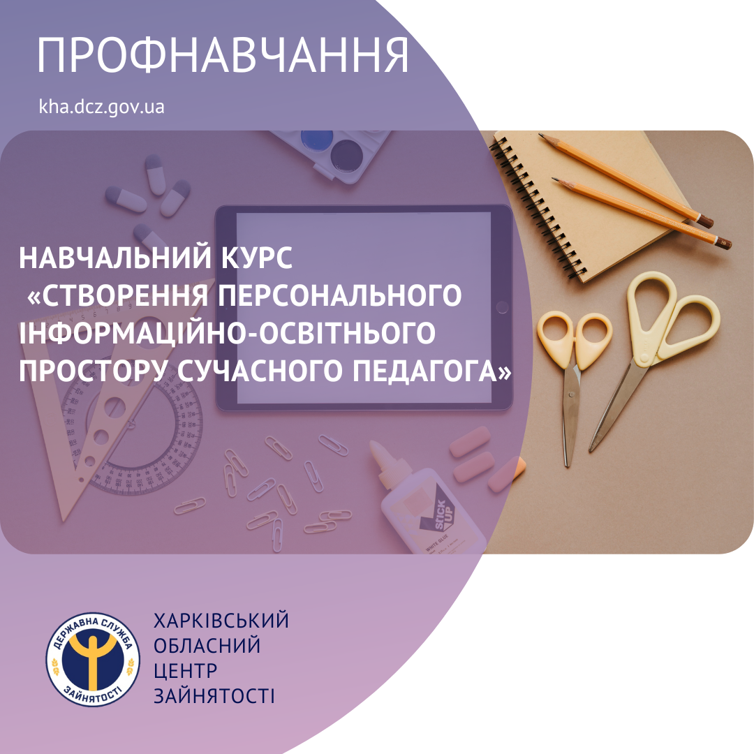 Харківський центр професійно-технічної освіти державної служби зайнятості пропонує навчальний курс за напрямом: «Створення персонального інформаційно-освітнього простору сучасного педагога»