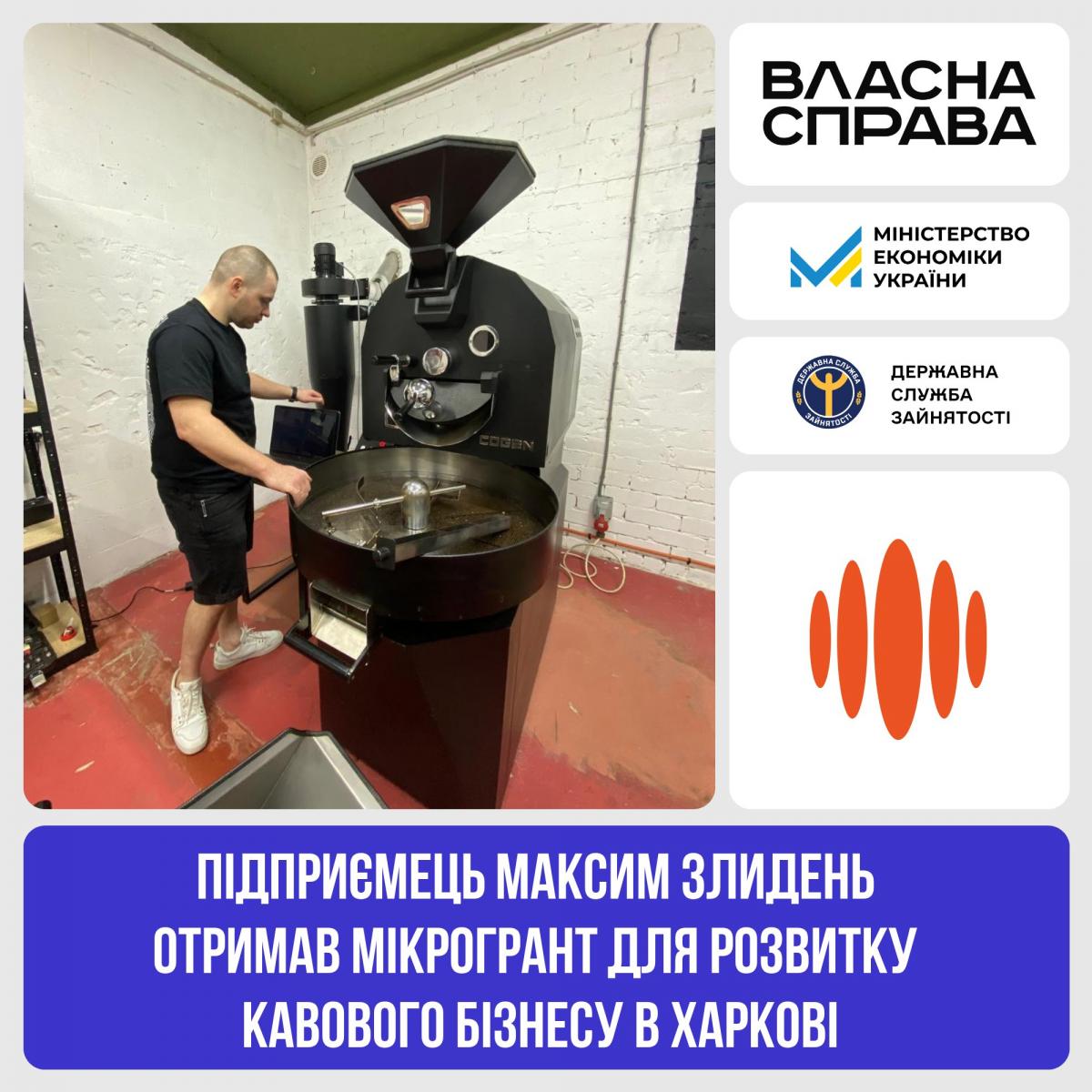 Підприємець Максим Злидень отримав мікрогрант, що дозволило йому здійснити давню мрію – відкрити кавовий простір та обсмажувальний цех у Харкові.