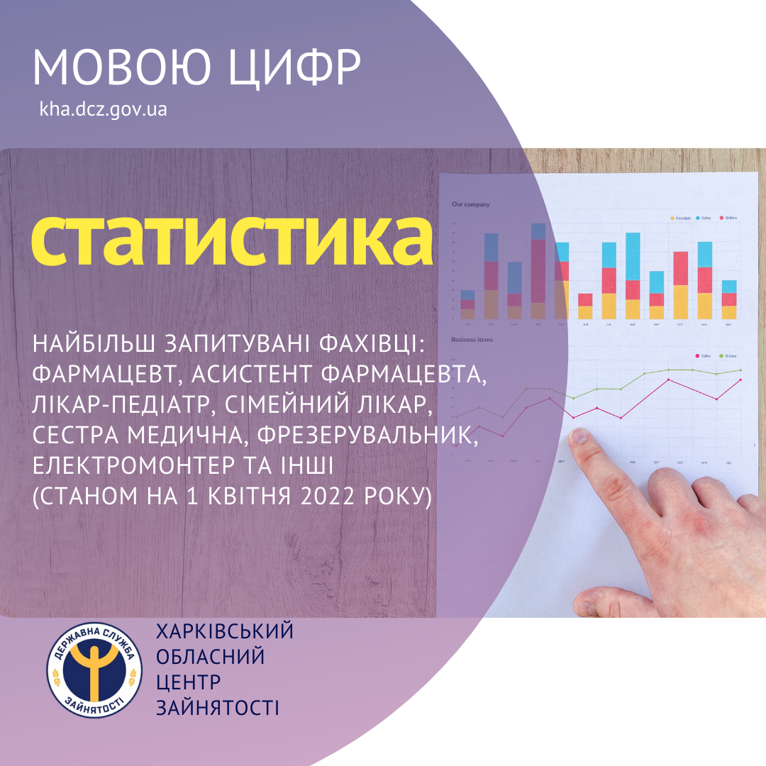Найбільш запитувані фахівці: фармацевт, асистент фармацевта, лікар-педіатр, сімейний лікар, сестра медична (операційна), фрезерувальник, електромонтер, слюсар з механоскладальних робіт, електромеханік (станом на 1 квітня 2022 року).