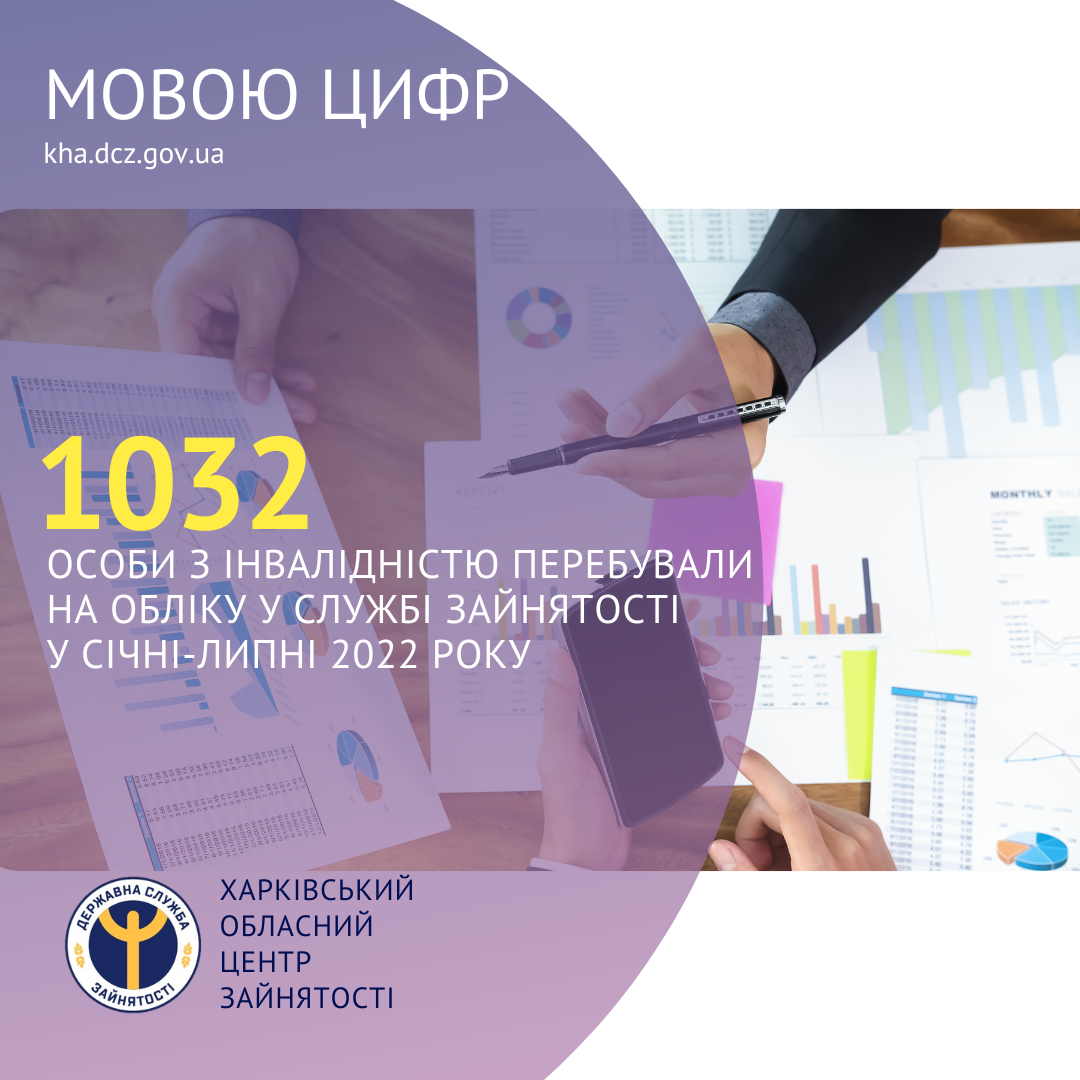 1032 особи з інвалідністю перебували на обліку у Харківській обласній службі зайнятості протягом січня-липня 2022 року.