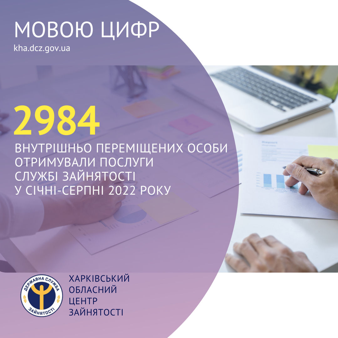 2984 внутрішньо переміщених особи отримували послуги Харківської обласної служби зайнятості протягом січня-серпня 2022 року.