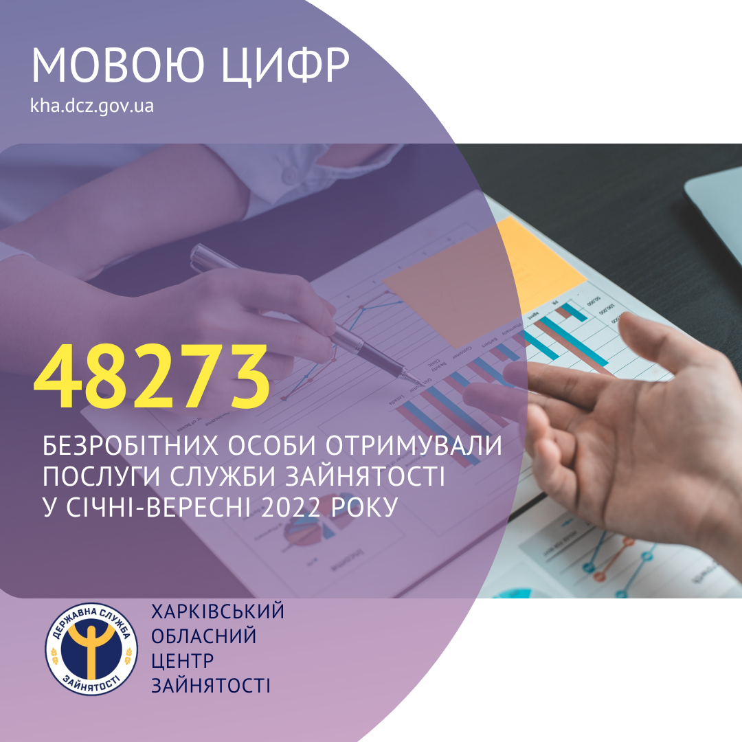 48273 безробітних особи отримували послуги Харківської обласної служби зайнятості у січні-вересні 2022 року.