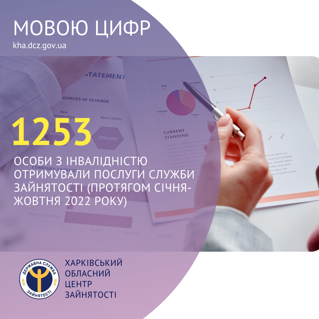 1253 особи з інвалідністю отримували послуги Харківської обласної служби зайнятості (протягом січня-жовтня 2022 року).