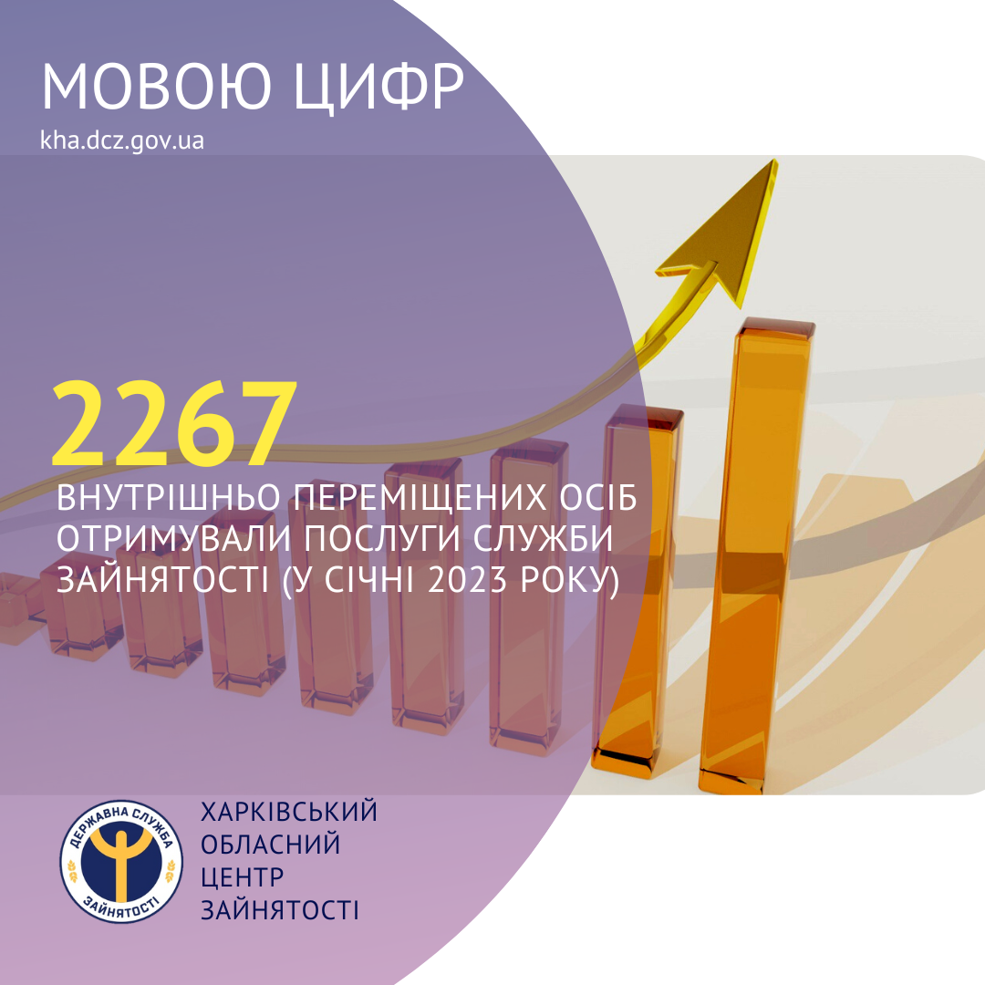2267 внутрішньо переміщених осіб отримували послуги Харківської обласної служби зайнятості (у січні 2023 року).