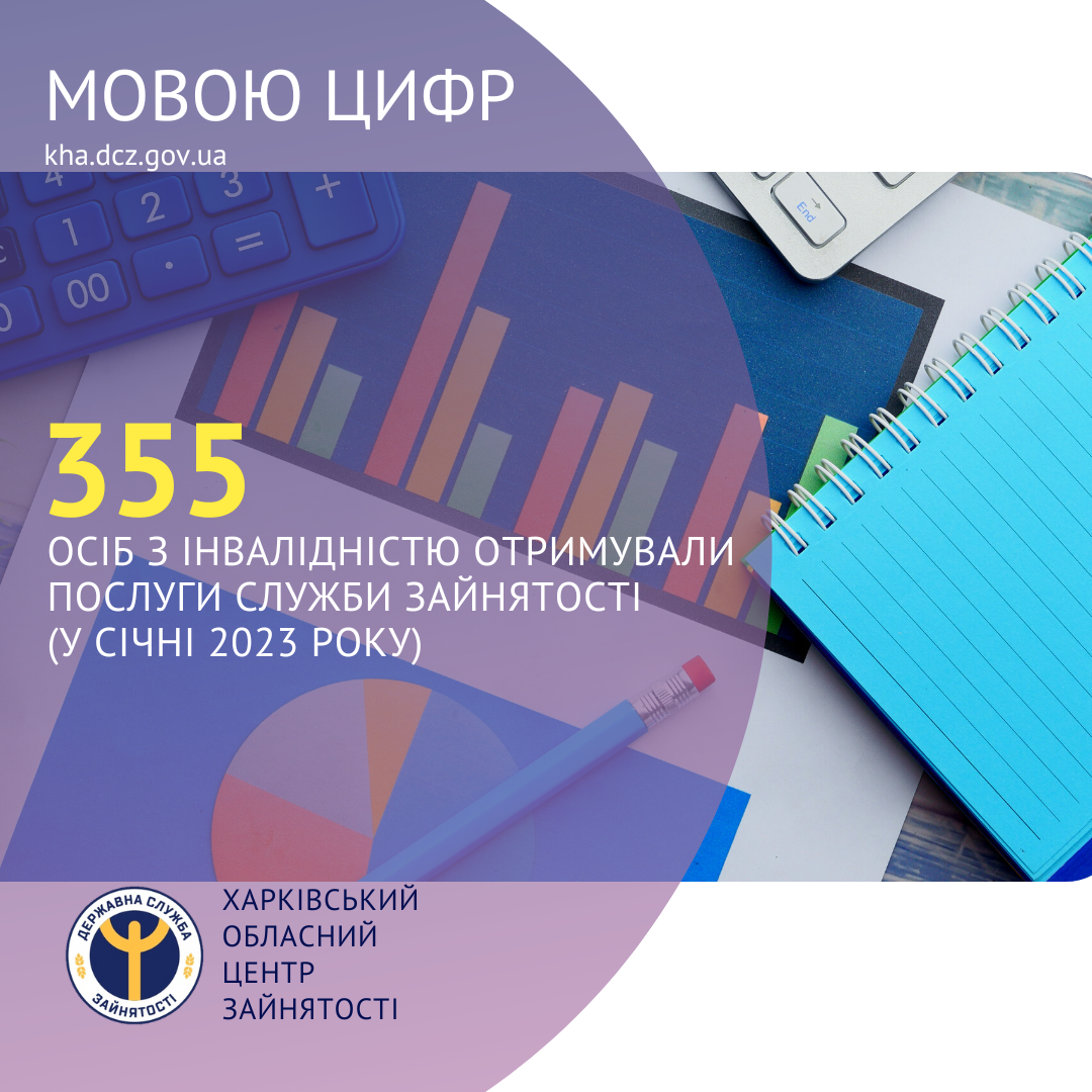 355 осіб з інвалідністю отримували послуги Харківської обласної служби зайнятості (у січні 2023 року).
