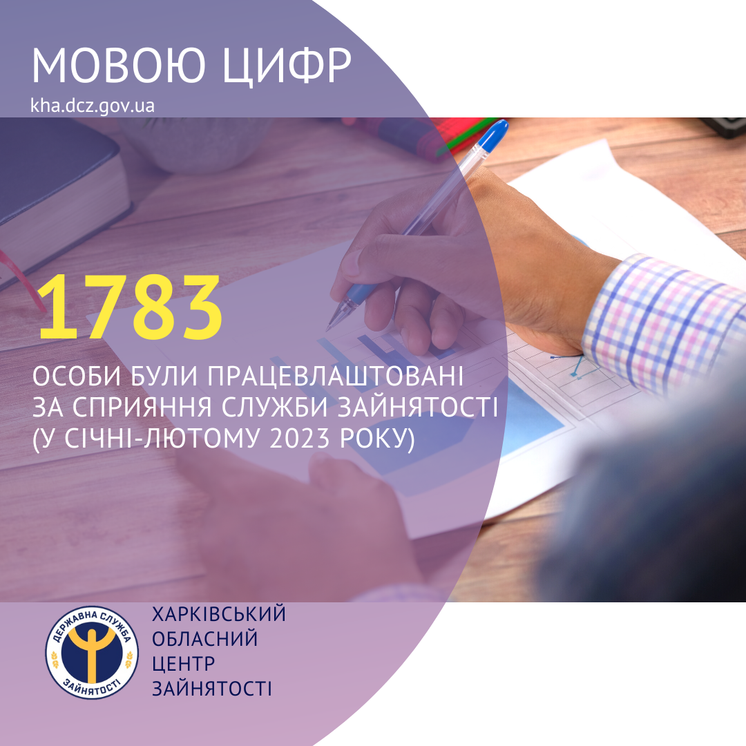 1783 особи були працевлаштовані за сприяння Харківської обласної служби зайнятості (у січні-лютому 2023 року).