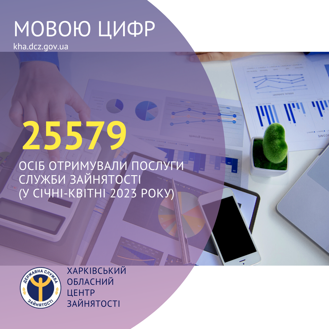 25579 осіб отримували послуги Харківської обласної служби зайнятості (у січні-квітні 2023 року).