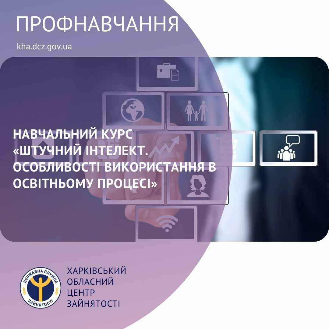 Харківський центр професійно-технічної освіти державної служби зайнятості пропонує навчальний курс за напрямом «Штучний інтелект. Особливості використання в освітньому процесі».